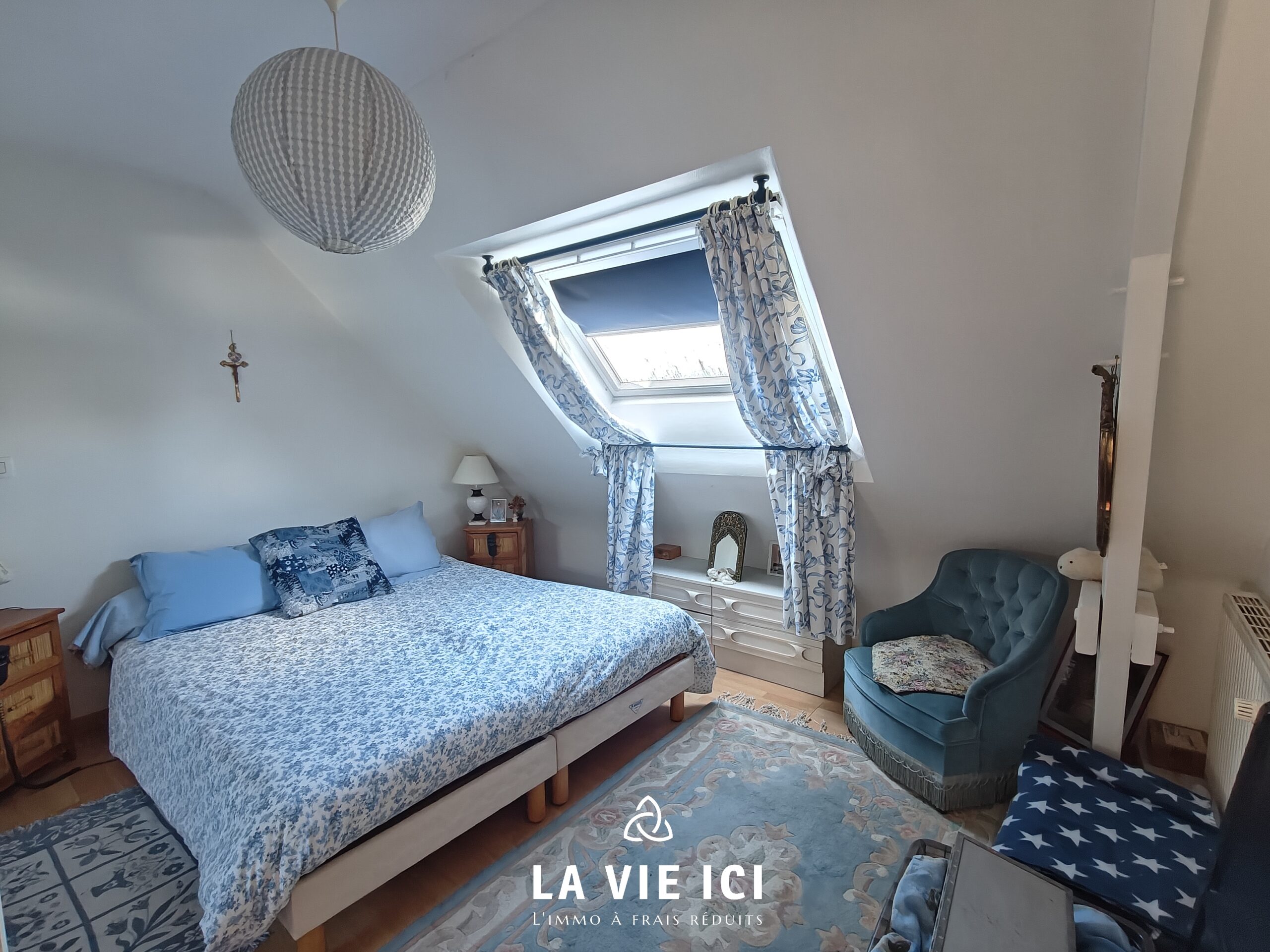 À l’étage : trois chambres, une salle de bain, un WC et un grenier aménageable accessible depuis le couloir, idéal pour créer un bureau, une salle de jeux ou une chambre supplémentaire.