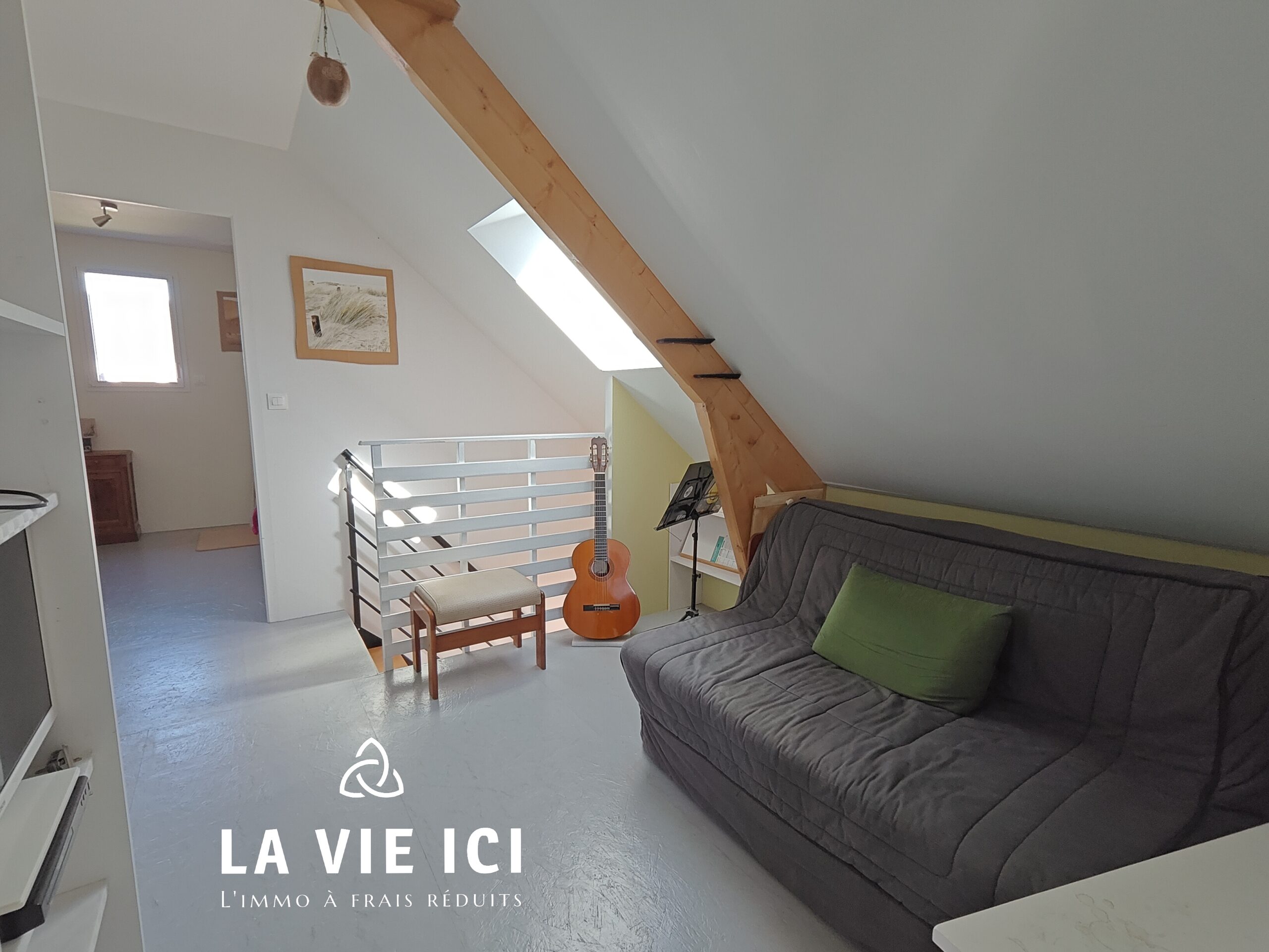 À l’étage : deux chambres, une salle d’eau avec WC ainsi qu’une mezzanine complètent l’ensemble.