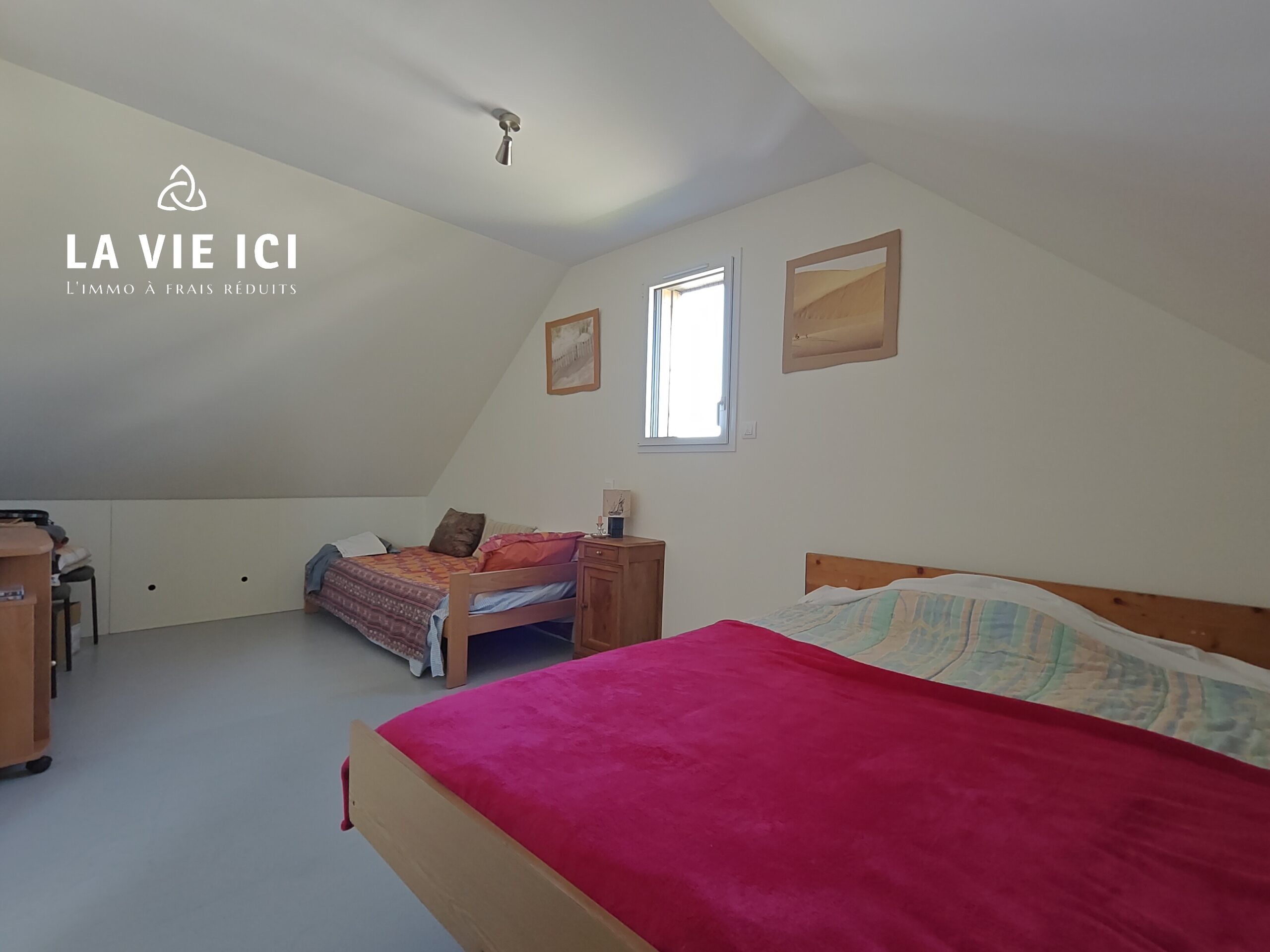 Au rez-de-chaussée : une chambre, une salle d’eau, WC séparés, vestiaire et placards permettant une vraie vie de plain-pied.